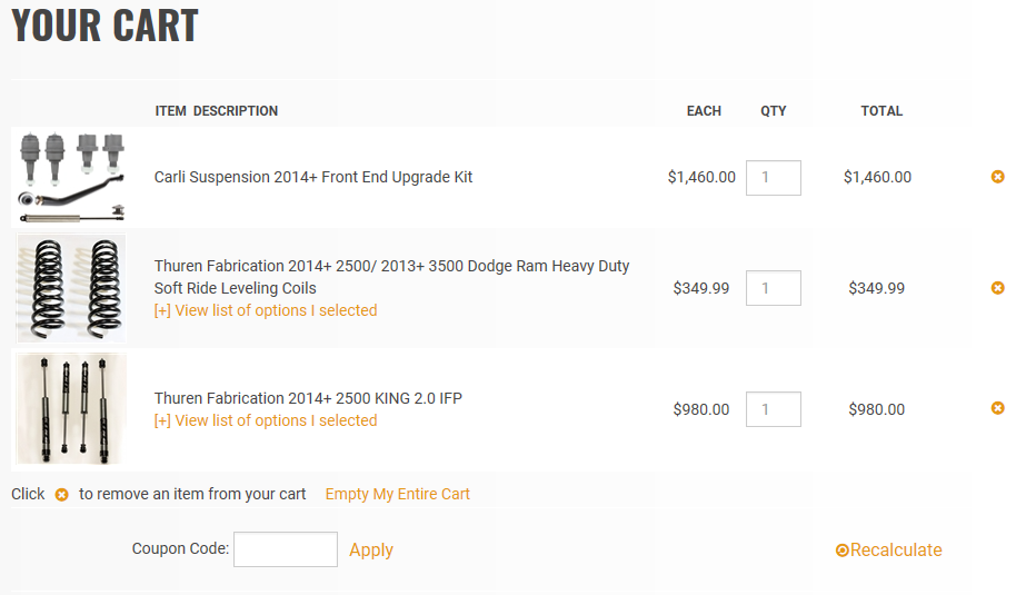 What are your goals for the truck? To spend money. :lol: Spend money... check! Welcome, first... Ugh, get off CJC's website :thppt: Why are you buying a Carli front end upgrade kit? Why do you think you want 2.0 IFP's? What are your goals for the truck? My use for the truck will be daily driver for...