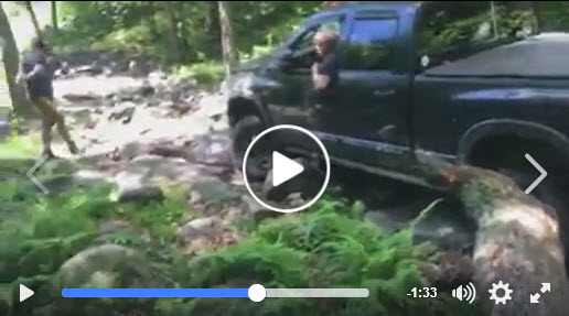 Thanks for the help getting me out of it by building up the stones. I have a video on it that Stephanie took with my phone. Thanks, Stephanie! I wound up bending the skid plate. I like Peter's idea to take it off and drive over it to straighten it out! LOL!!