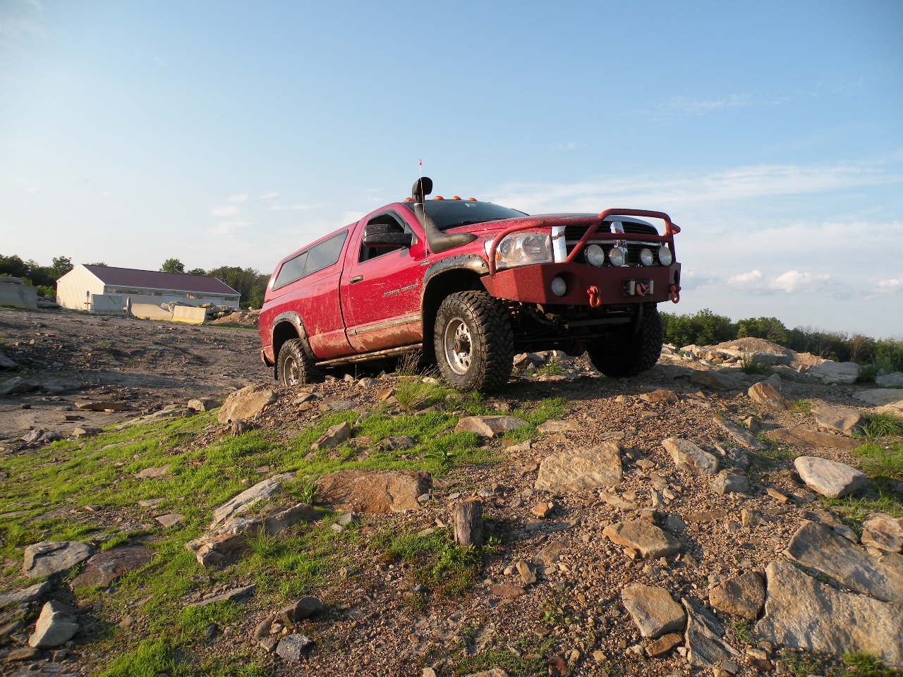 2007PW, black, quad cab, G56 6spd, heated leather, sunroof, dual zone climate, Mickey Thompson Baja MTZ (315/70/17), Locker Bypass, TPS Bypass, Lund tonneau, Maple Offroad sliders, wheel wheel liners, K&N filter, bedliner, PIAA headlights, PIAA foglights, 24" LED lightbar behind grill, Carli Diff guard, Dodge Off Road steering brace, Carli High Clearance Control Arms, Carli Trac Bar, Bilstein 5100 shocks, Carli ball joints, updated "T" style linkage, Odyssy battery, recovery gear, Studded Goodyear Duratrack 315/70/17 for winter