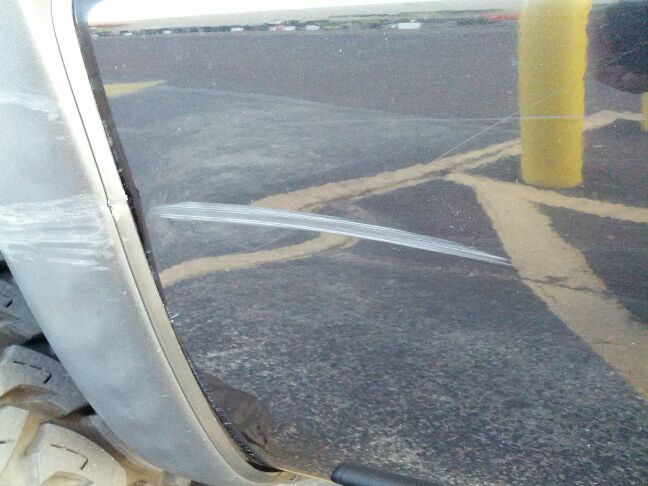 I assume from a rock. It's the driver's side lower. It took a hit from below.