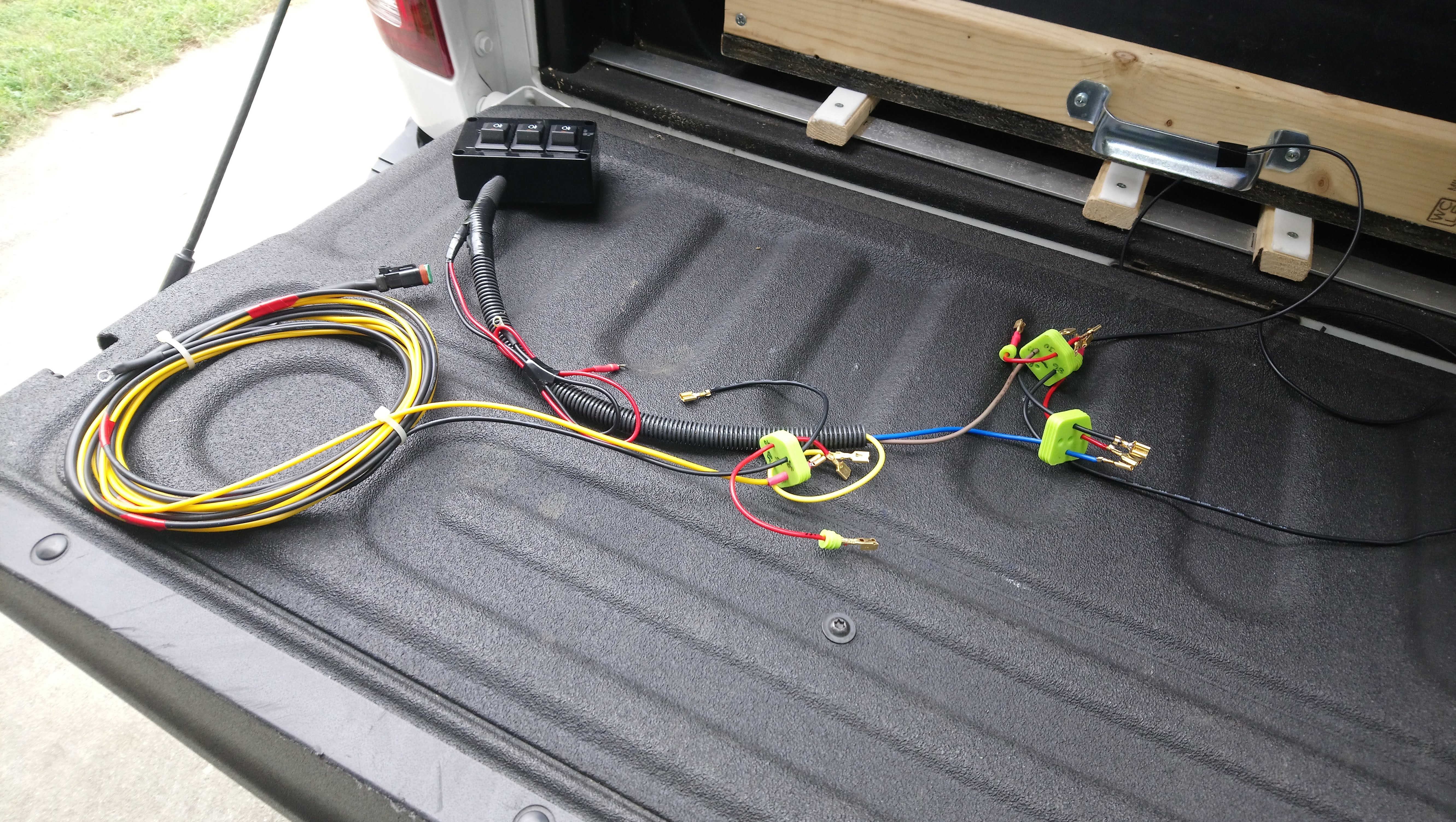 For the lighting, I'm putting a battery in the RAMBOX with the National Luna battery controller and a switch bank to control the camp lighting I'm putting on the bed rack.