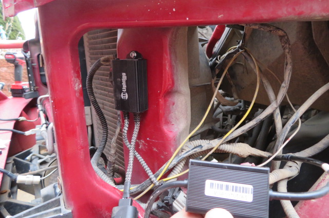 1st pic. Find a spot to mount the one module. The smaller module I just tucked it up in the wiring harness