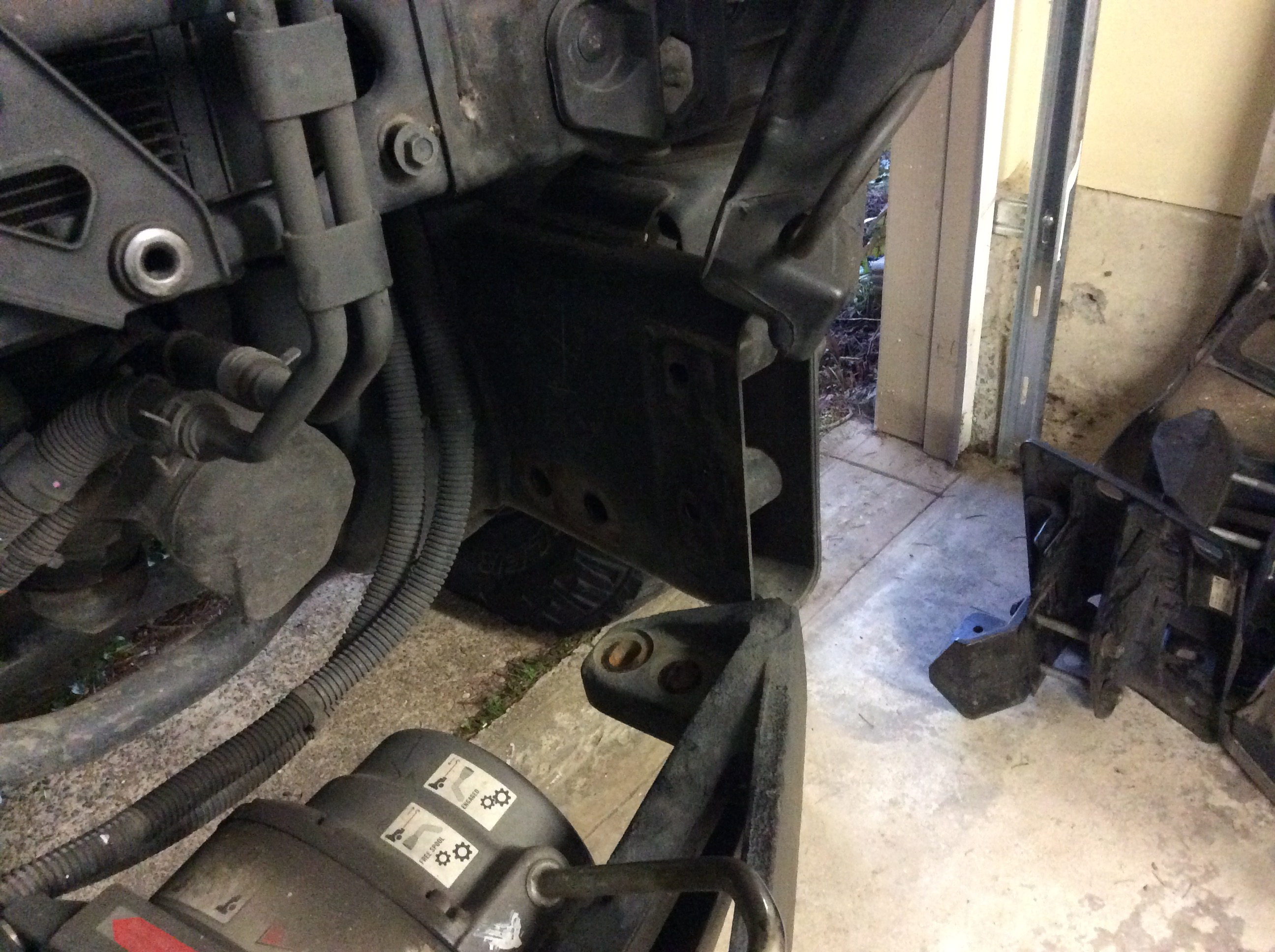 Luckily I have a Harbor freight motorcycle lift that let me hold the bumper in place as I bolted it to the bumper brackets. I also have a heavy duty hydraulic jack but it would not have worked as well as the motorcycle lift due to it having a wider platform to hold the bumper and wheels to move it around to get it aligned with the bumper brackets.