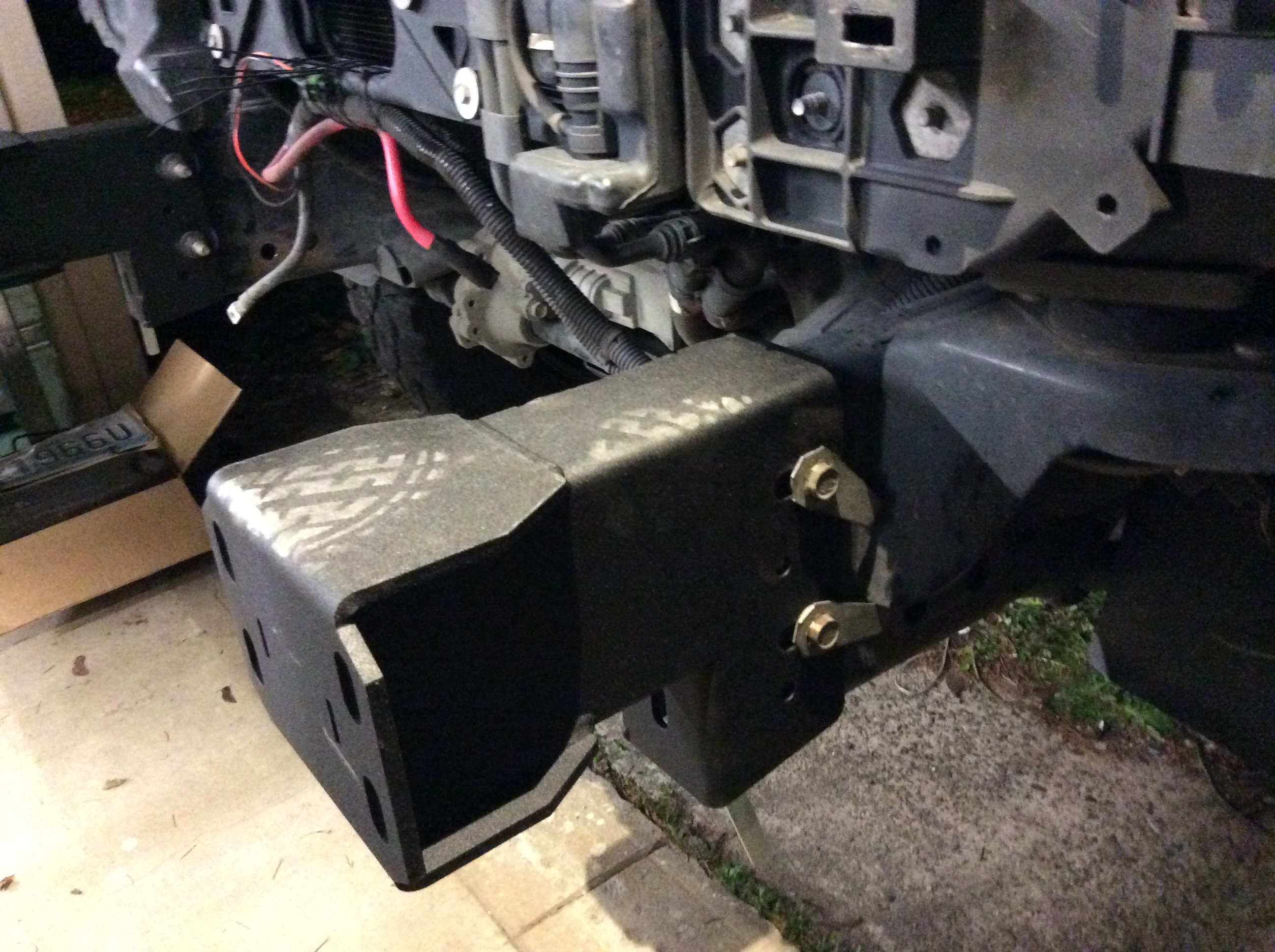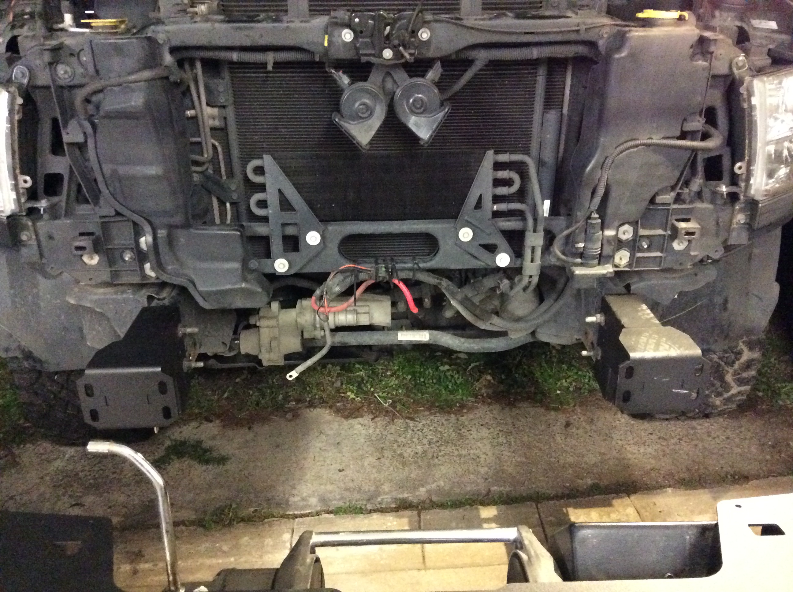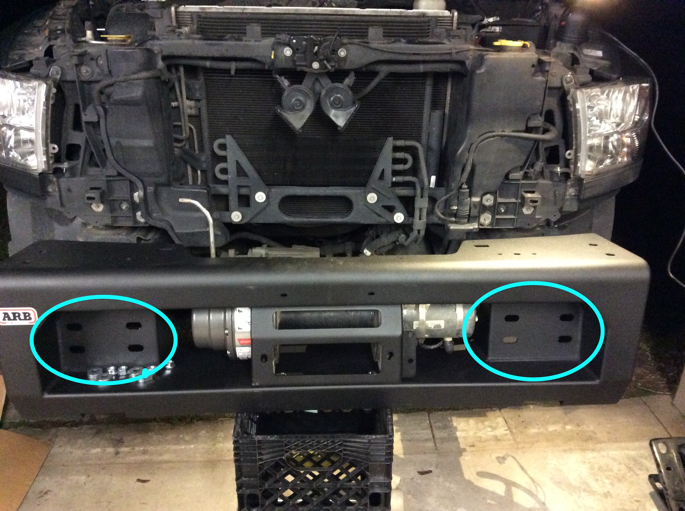 Winch on bumper getting bolted to the new ARB bumper brackets. These parts are HEAVY.