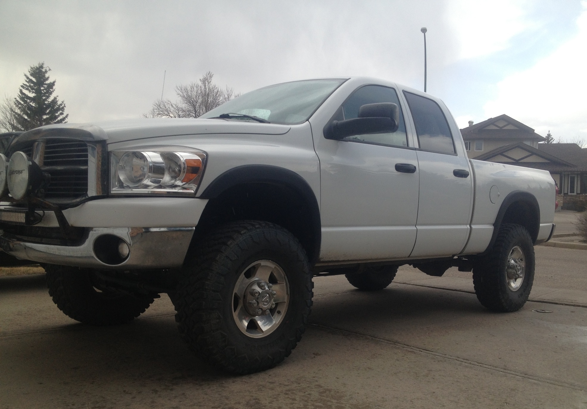 08 ctd--mini max--thuren 3" coils and LT Leaves--4.56 gears and lockers in pw axles--some lights--afe intake system--bd super b turbo--Banks w/m Injection--Dynatrac Balljoints--king 2.5"s--37" Hankook Dynapro MT--DOR Long arms--Custom emf track bar--Manual T-case swap--Full PW Under armor--PSC Hydro Assist and so much more
