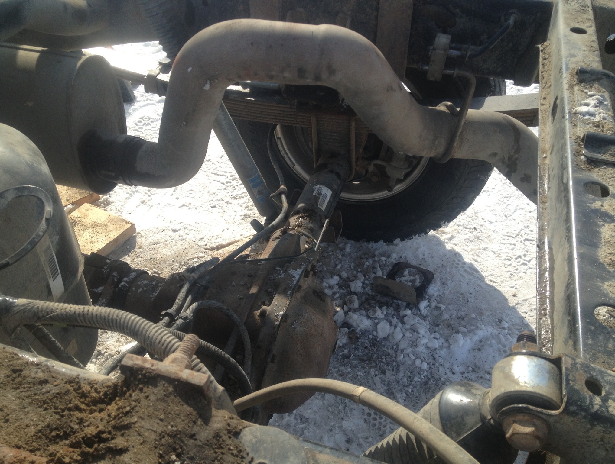 Just finished taking her for a spin. The power is retarded now. Gonna have to turn down the tuner. Doing 110 on the gravel its easy to spin the tires to 130. I mean it likes to spin the tires. Big change in cruising rpm. 105 used to be 1500 rpm. Now its 1600rpm for 95kph. Was worried heard a huge clunk in the front end. All worried. Ended up being the hood was popped. Doh!! Have some tie rods to fix up yet the. Should be good to go. The back is now taller than the 2500 diesel with carli add packs. And way way smoother. Only thing left now is front driveshaft hookup and wire up the lockers. I'd say this has been a successful endeavour.