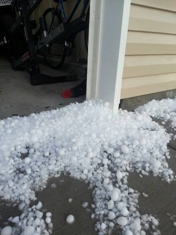 What crazy weather the west has had lately. Major hail storm came through north eastern Utah this evening. Golf ball size and bigger. Beat holes in the siding on the house, and beat my poor wagon. It got dark before I could get pics of the truck, but here are some of the damage. Even broke the windshield on my work truck!