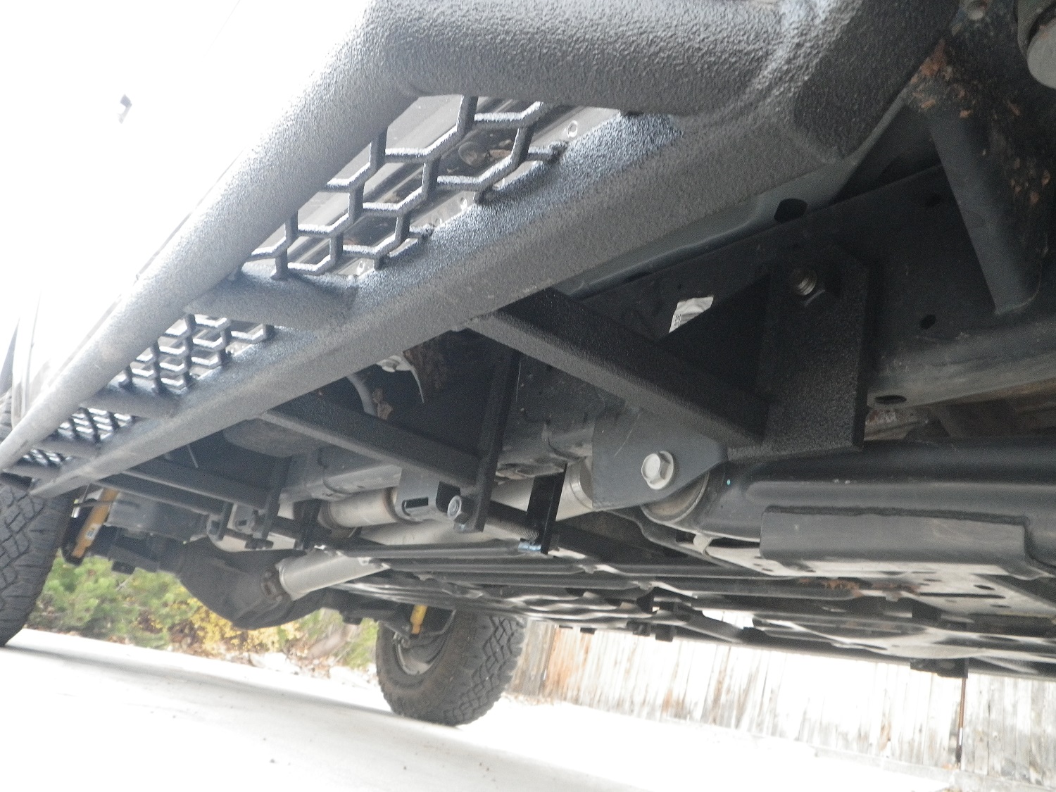 Well I finally got them built and installed, they are similar to white knuckle with a few changes (mounting location and expanded metal inserts) should be just as tough, I used 3/4" studs to mount them except for the front mount which is a 7/8" stud through the frame. The drivers side was a real PITA to install . I know the Line X will get worn on the underside but they look so good right now.