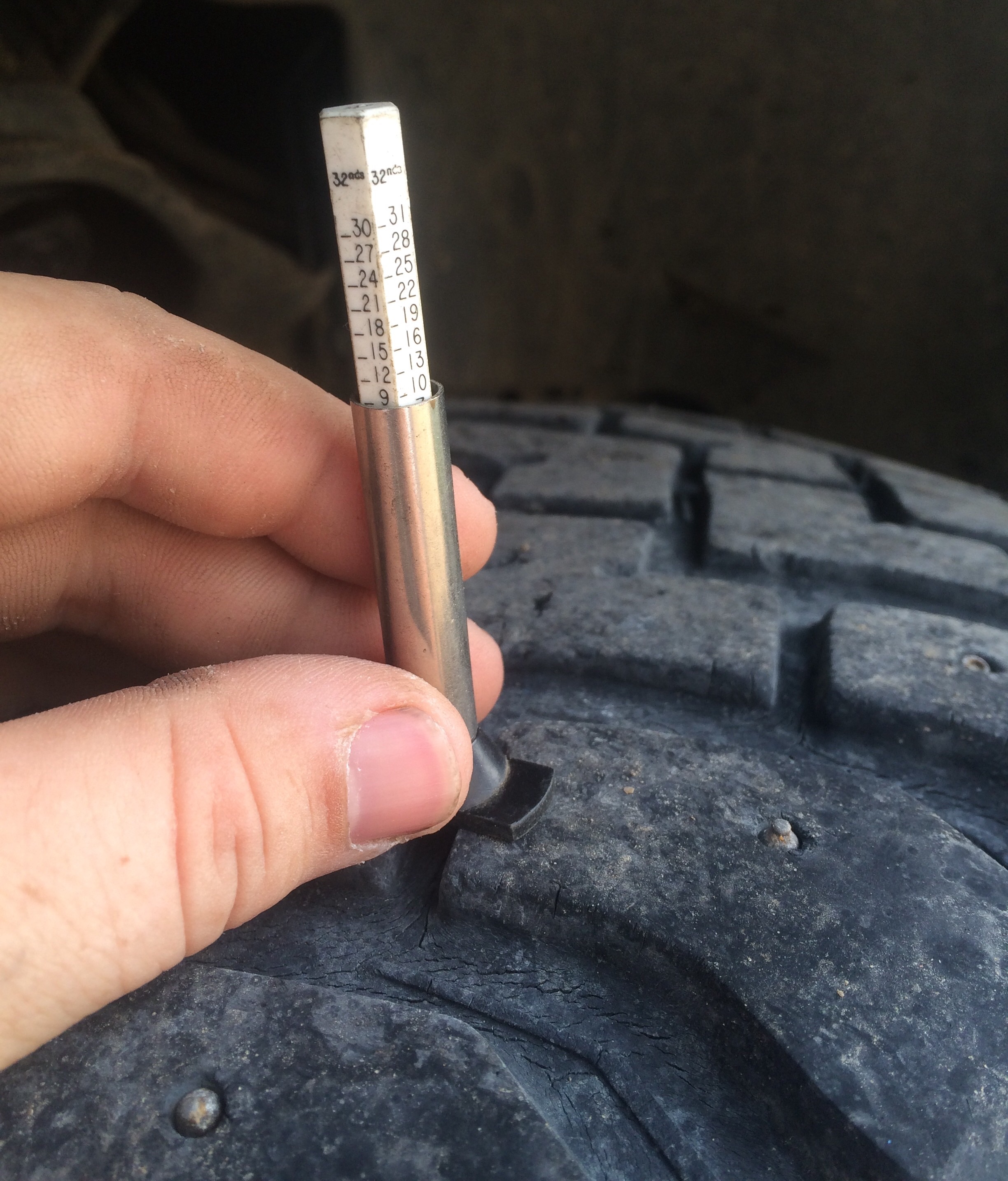 These have almost 73,000km on them. Nearly half their life has been on gravel. They are between 7/32 at the worst and 9/32 overall tread. That's 30% left starting at 21/32. They went through last winter at 12/32 and no issues.