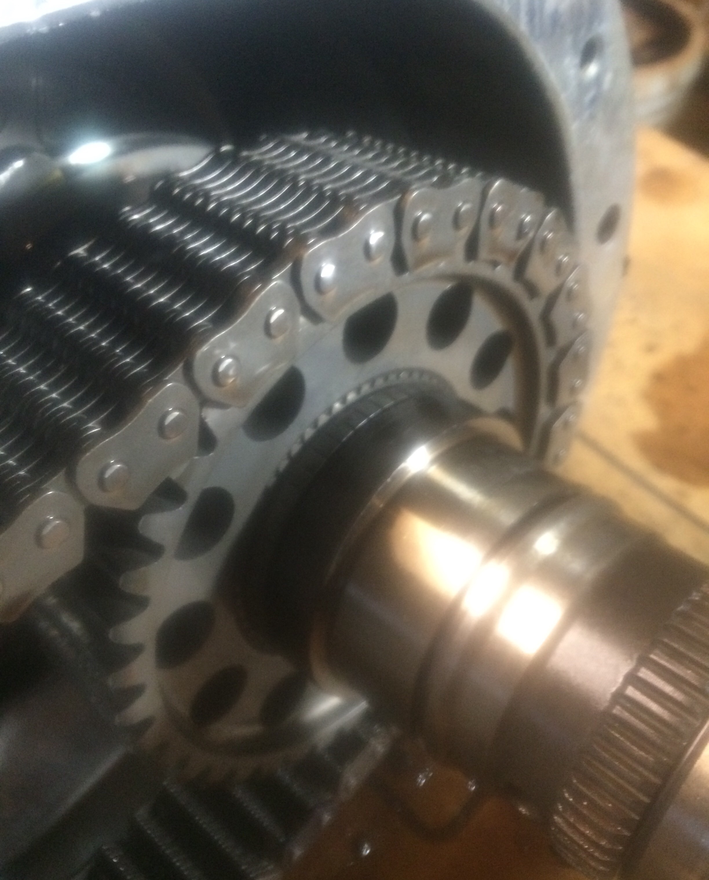 Well once u got the rear half off everything is pretty simple. The two chain sprockets have snap ring retainng clips on them. Pop them out then pull both sprockets off the shafts with the chain still on. It slides off easy.