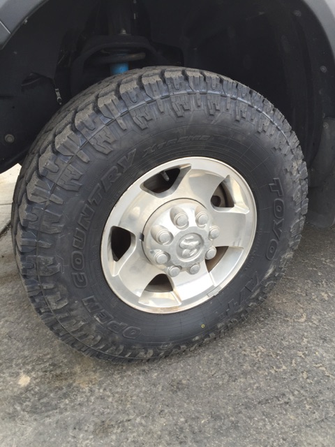 Just a couple of pictures of the 285/75's on my truck. It might give you some perspective of size.04Ram2500Hemi wrote:I'm running a 285/75/17 Toyo A/T II on my 2012 and I'm really happy with them. I can still run tire chains in the winter and not worry about rubbing issues.