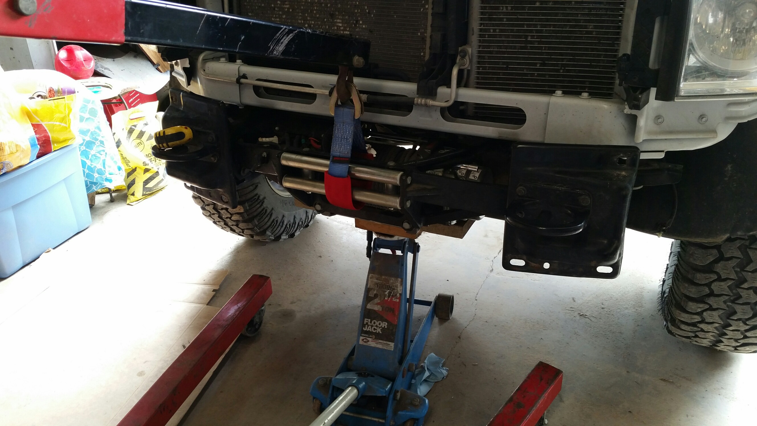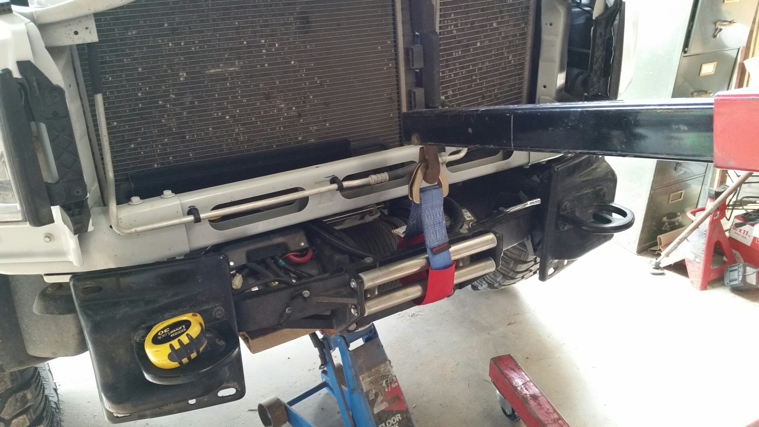 Also when you go to put it in you have to raise the winch and mount higher than the bumper brackets and lower it in on a 30-45 degree angle I used a cherry picker and a floor jack