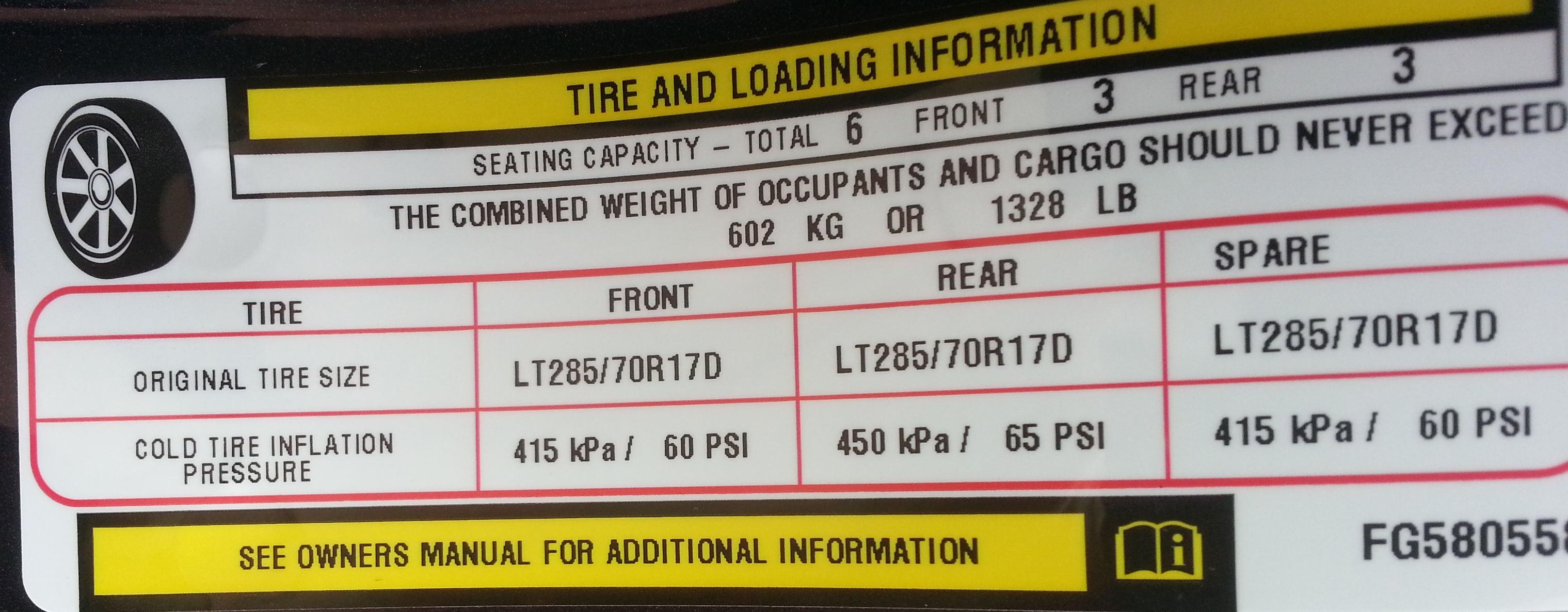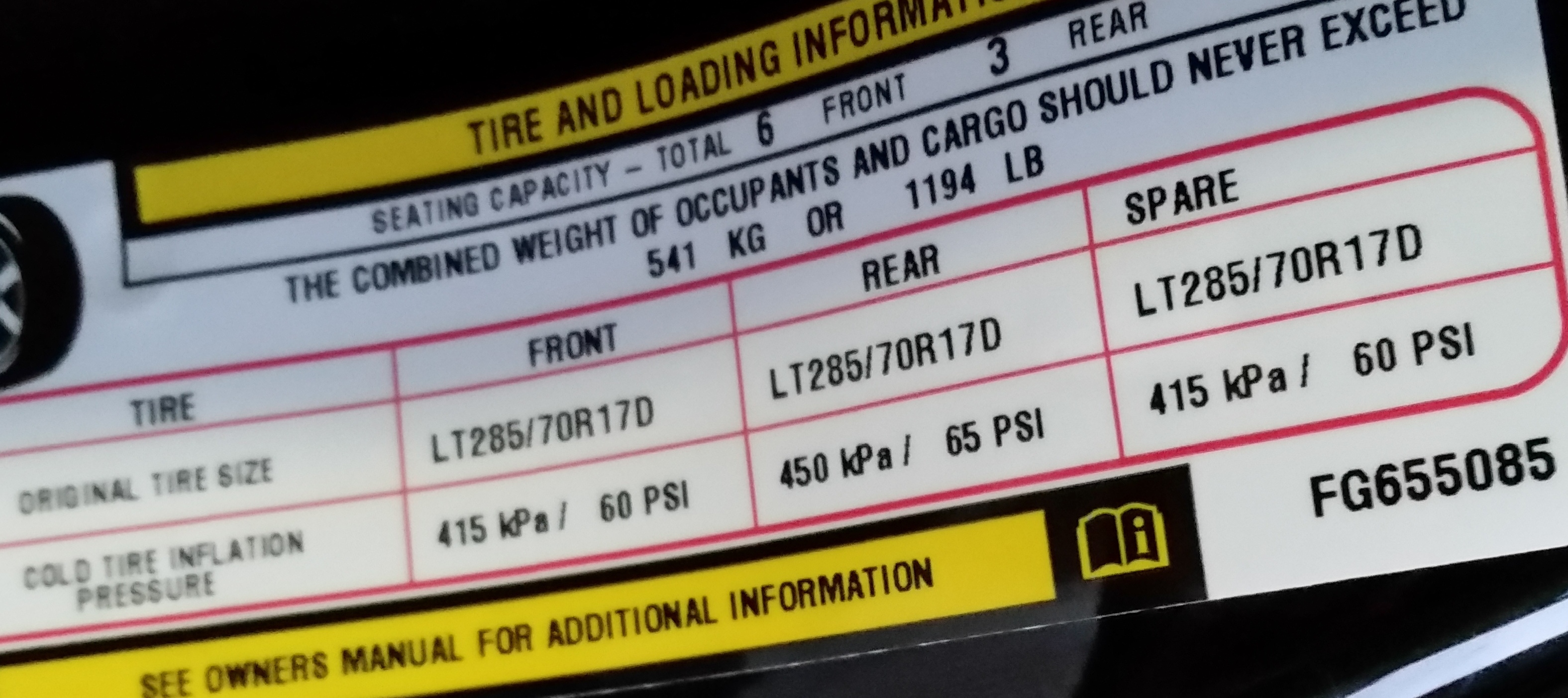 There should be one more sticker (with yellow on it) that will show the payload for your particular truck. Lets see it!