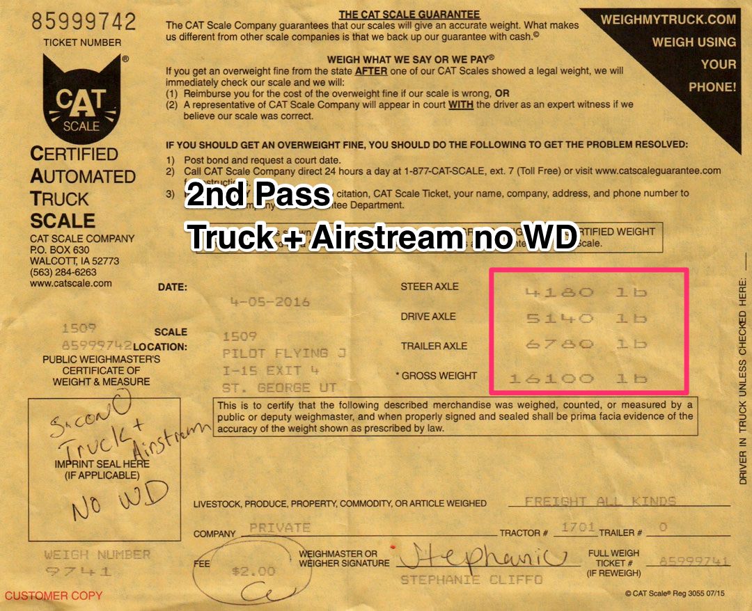 When I do the truck and Airstream, it's usually to figure out tongue weight, and if my WD is setup correctly. First pass naturally tells me the trucks axle weights.