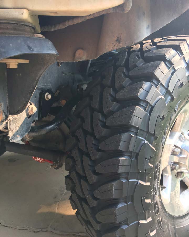 I have no rubbing on fenders lock to lock, haven't done a full stuff test yet. I was going to do that later. I have factory wheels and high clearance bumper so my fenders up front were already cut. I think at full lock the front might rub the sway bar a tad. Have to do some more testing.NickTF wrote:You will probably have less rubbing then I do on the outside rear of the fender; however, I don't think you'll be able to turn lock to lock.
