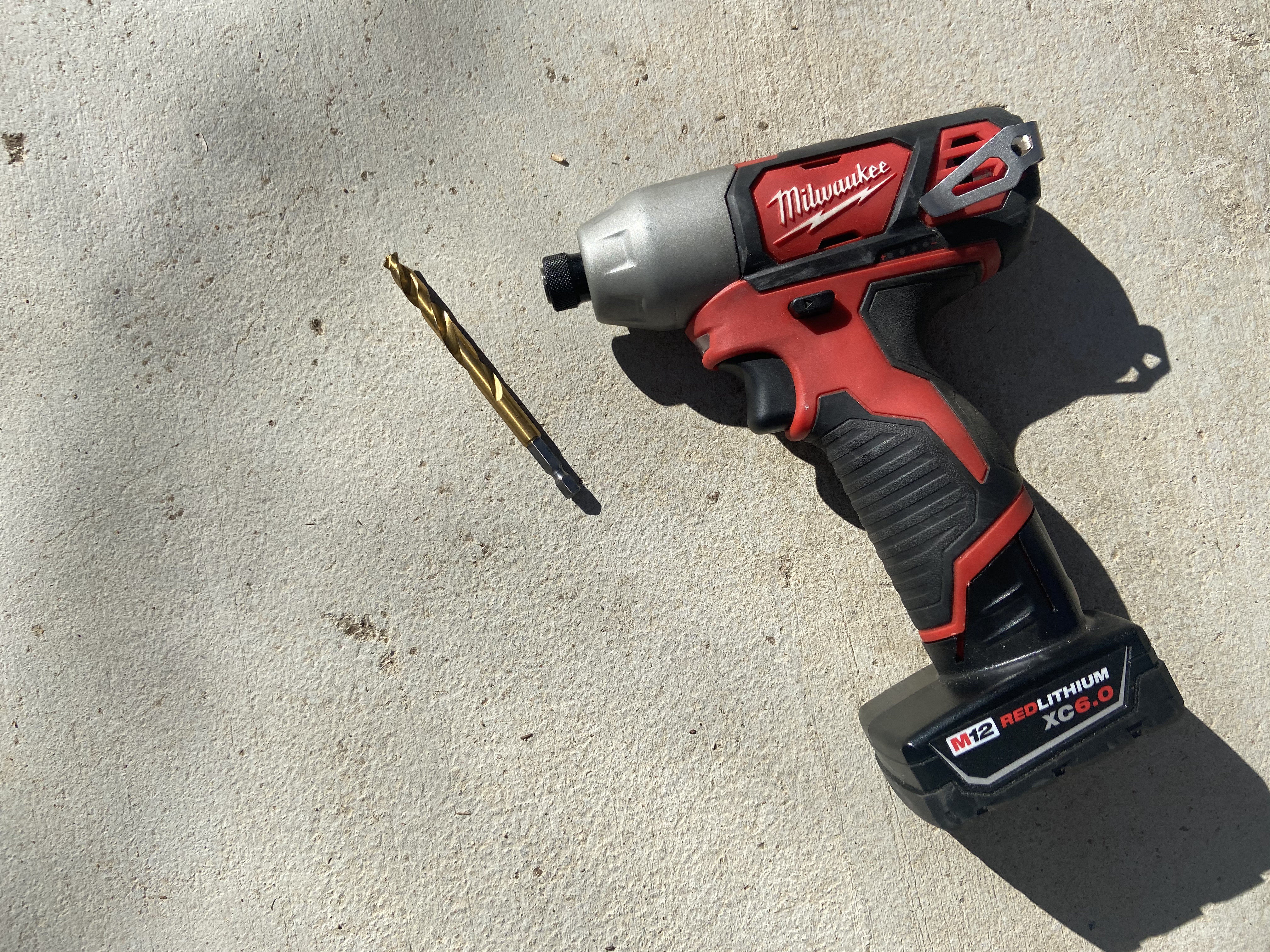 While I was looking at my collection of power tools, I realized my little 12v Milwaukee impact driver might be the solution. Sure enough, I found a 5/16" drill bit for impact drivers problem solved with room to spare.
