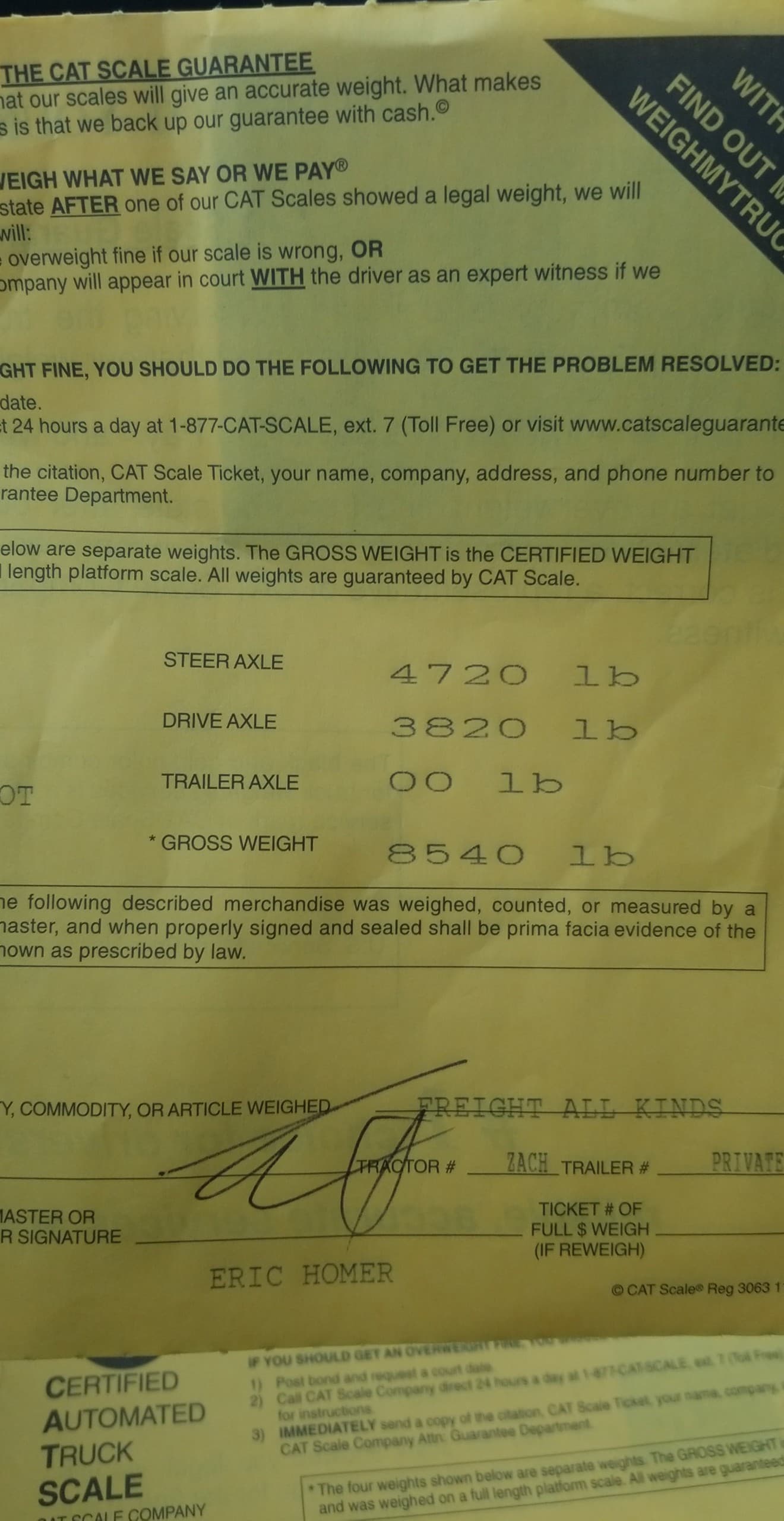 steer axle weighted in at 4380lbs (max 4750)