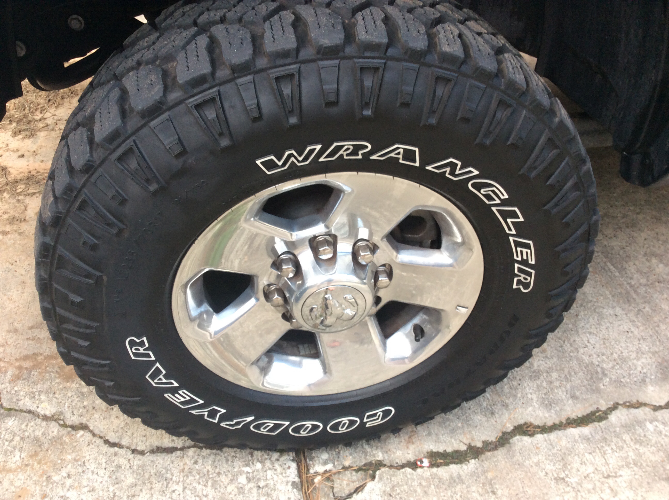 I am switching out my Duratracs and would like to offer up my wheels, less than 6k miles and never been off-road. Spare is still under truck, no punctures rips or tears, still have the nipples on the side.