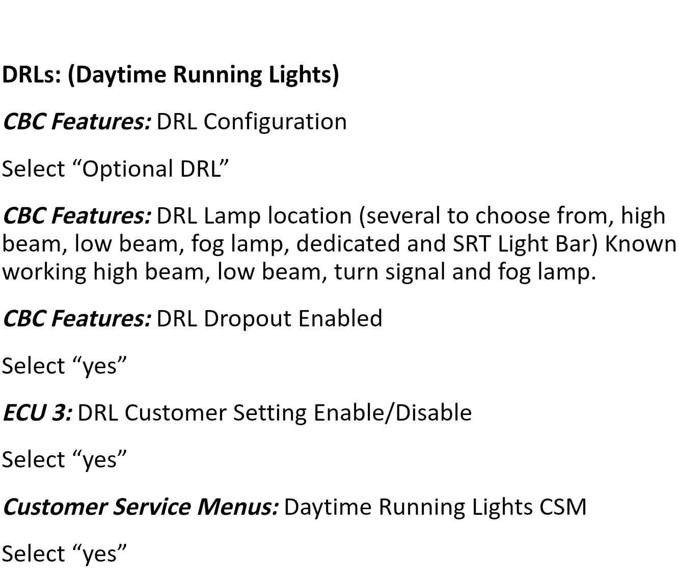 Note: My 2013, does not show DRLs on the CSM and seemed to activate both DRLs and fogs with highbeams immediately.