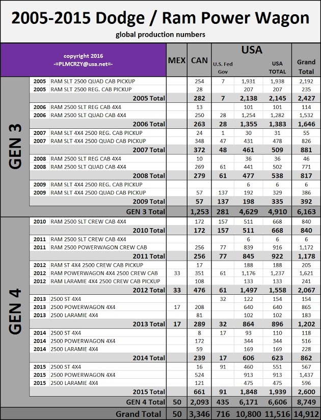 Re: Dodge Ram Power Wagon Global Production Numbers 2005-2015