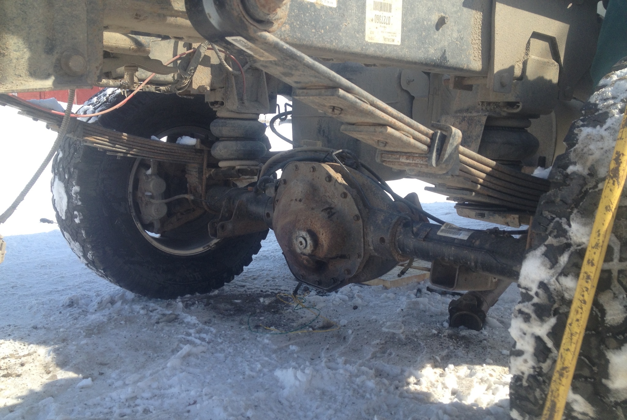 Alright boys. Today is the day for the rear axle. I convinced a buddy to come help me take the box off. And gonna tear into the rear end. I'll make sure to take some pictures. Here we go