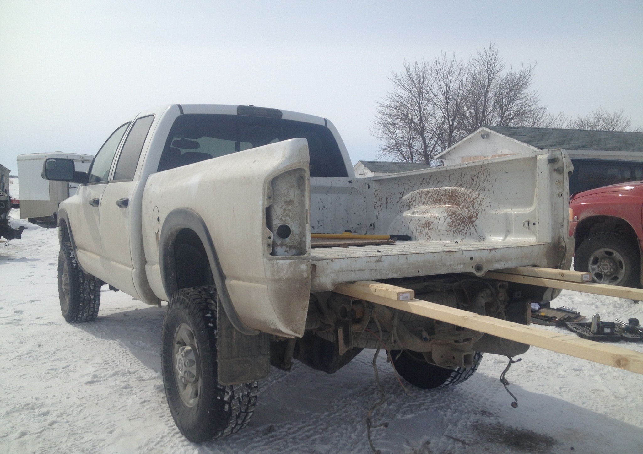 Alright boys. Today is the day for the rear axle. I convinced a buddy to come help me take the box off. And gonna tear into the rear end. I'll make sure to take some pictures. Here we go