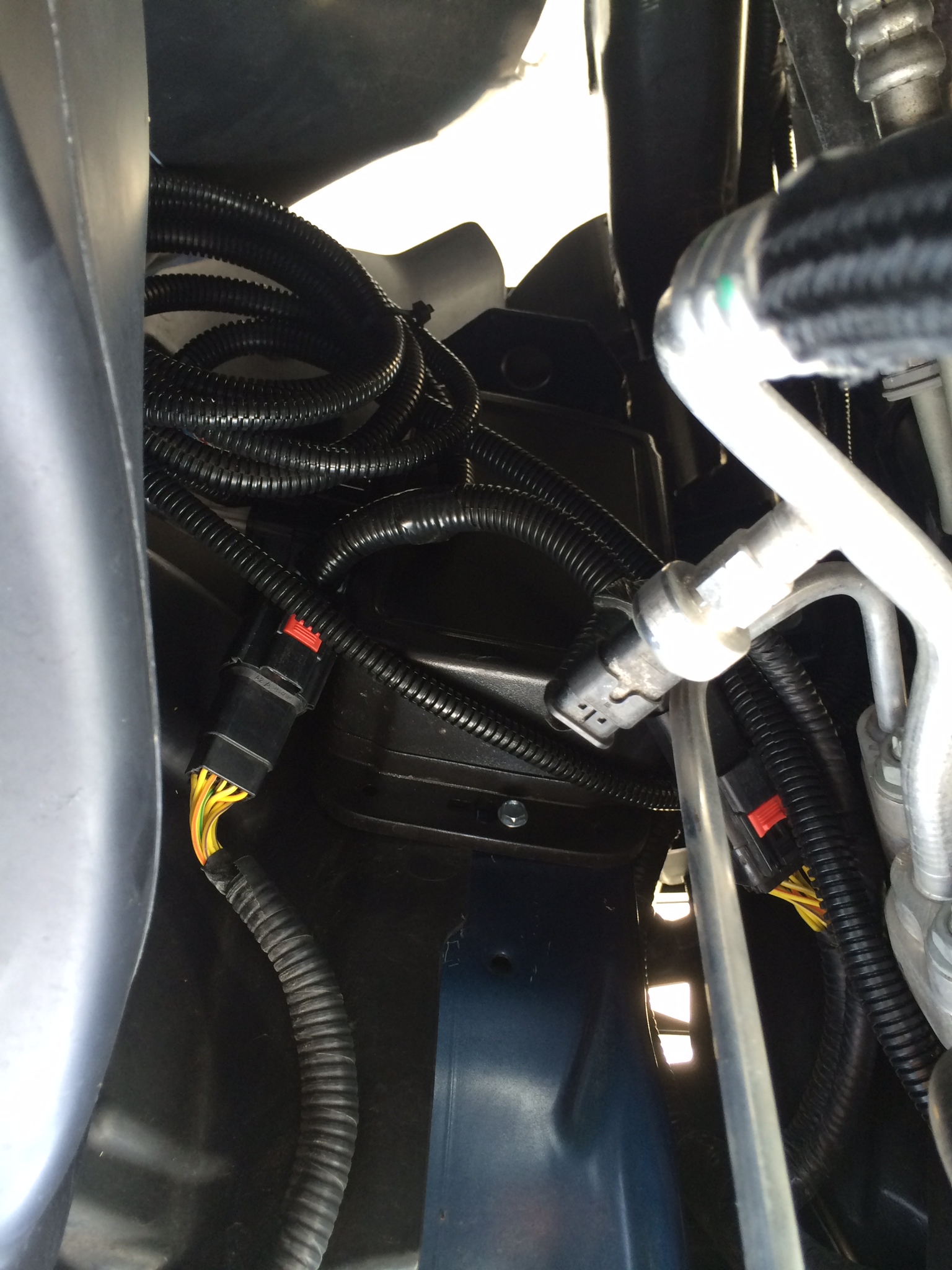 The first pic is where you have yours mounted notice the ground wire and the metal line. I mounted the box on the post to the right of the radiator right below where the Tee part of your kit plugs in. I have to neaten up the extra cable I coiled it up quickly to test the locker bypass out. I've used the lockers a few more times just checking out how quick they lock. I am very impressed this is how it should have been from the factory very quick. Thanks again. Now we need a decal/rear window sticker Myoung Locker bypass