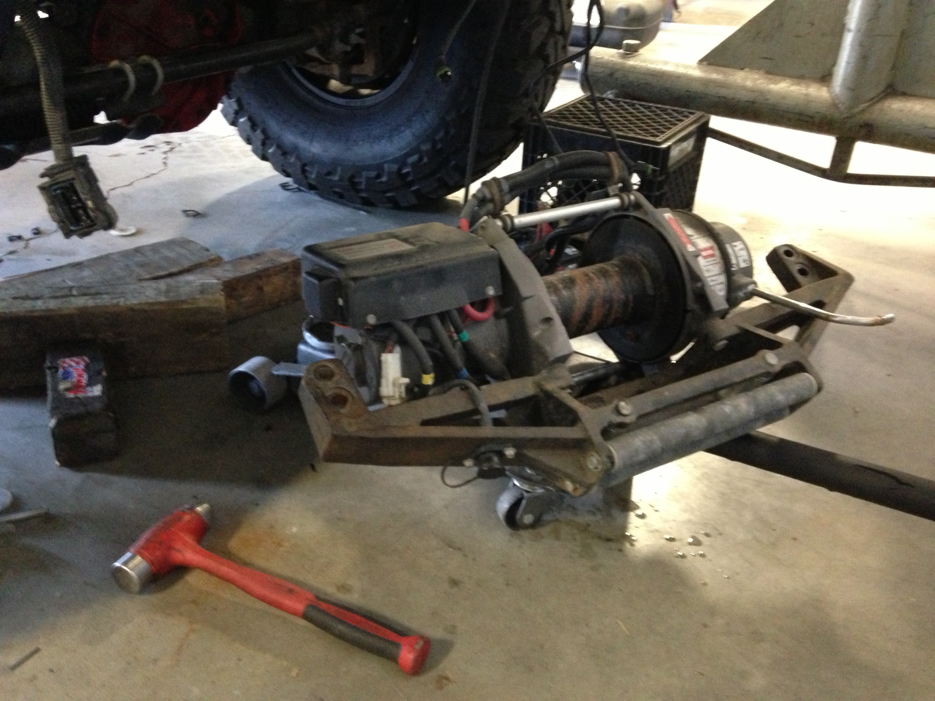I had to remove the sway bar. You can see the wiring harness hanging down in the pic. I will likely do a Currie AntiRock in the back!