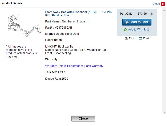 I've checked with NAPA, Autozone, Oreillys, and none of those have our end links or sway bar bushings. Their computers show lots of parts, but they all say "except disconnecting sway bar". As for the website, it looks legit, and I'm a computer guy. It is operated by a Chrysler dealership. I may be buying these as well from them.