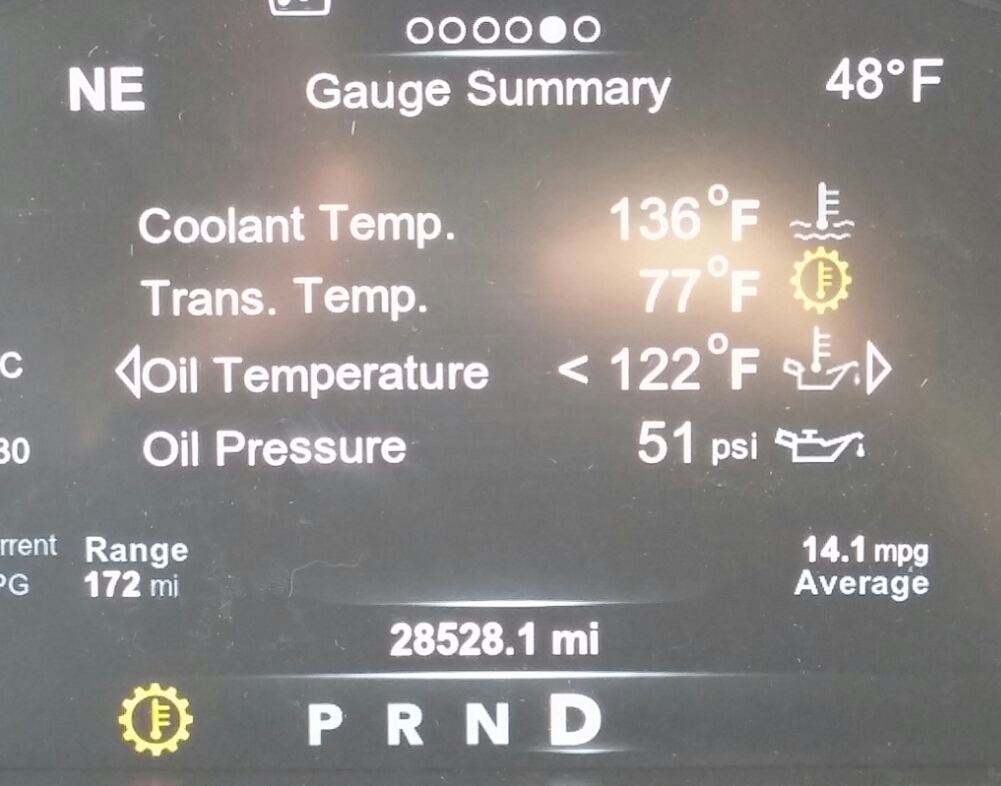 I of course wanted to verify for myself, I was actually paranoid that it wouldn't give me the error and I would forever be wondering if it was truly fixed. Well my usual hill had been blocked off, so I just had the dirt lot next to it for a quick test. Put it in 4HI, brake 90% (just enough to keep from locking up), hold RPMs at 1500-2000 for 30-45 seconds. Transmission went from 162 to 164 and error light came on. Transmission continued to climb to 168 before leveling off. Light went off at 167.