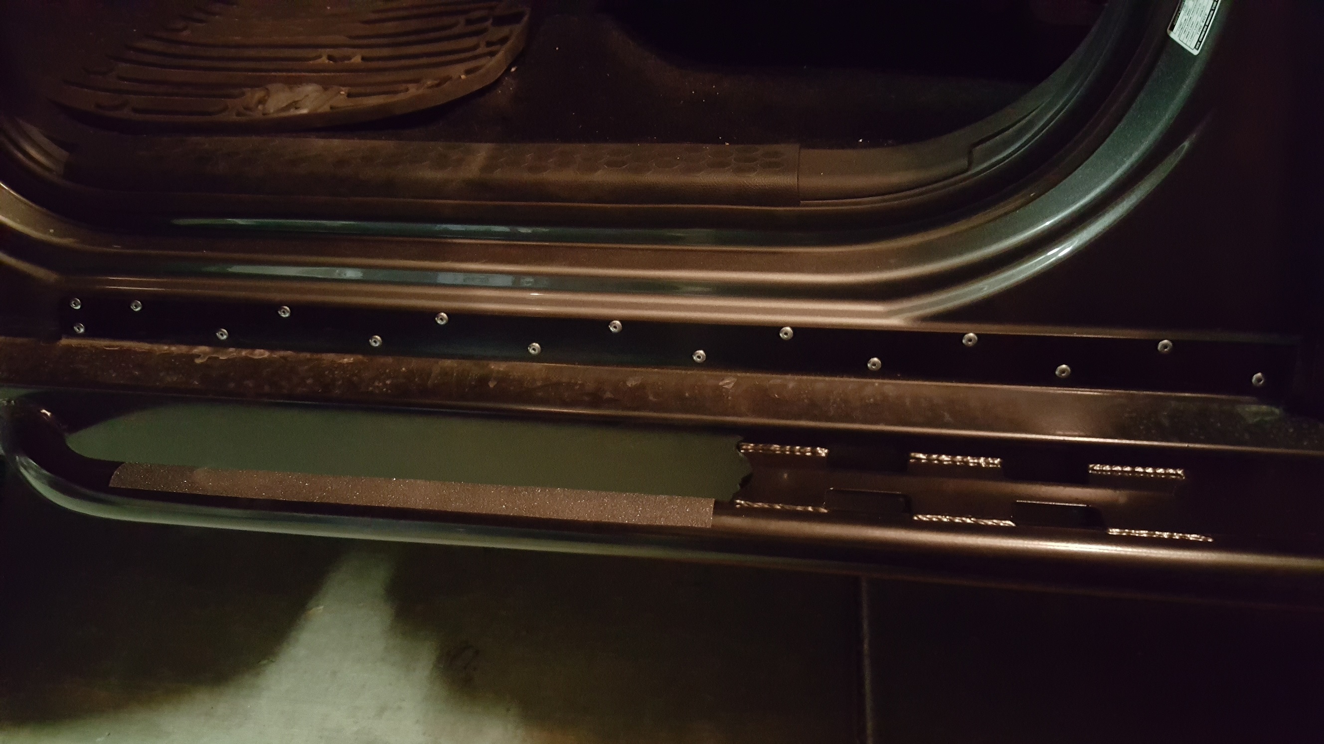 Here's a closeup of the rivets on the inside if anybody was interested. I get it not many people would want to punch holes in their trucks. I wanted to Line-X the rockers before the install but Randy advised against it due to the tolerances between the sliders and the doors. Before, my doors would just swing closed no problem. Now I have to give them a very slight nudge. All in all, I'm happy with them, and feel pretty confident they will hold up to the "hard offroading" best suited to frame mounted rock rails mentioned earlier :poke: :cheers: But in all honesty, it will be a while before I venture out on those types of trails. That's what my Jeeps are for :rockon: