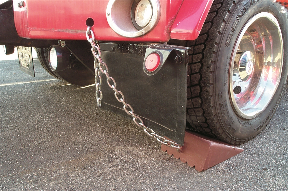 This is the type of wheel chock tow trucks use for heavy winching. They chain to the rear bumper of the truck, as the truck gets pulled on top of them, they dig in and move with the truck (if it moves at all). The Highway Patrol hates them, because they'll ruin a section of asphalt in nothing flat.![]()