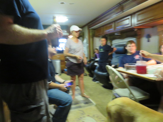 Friday night in the motorhome. Pouring rain. The cherries in the jar have been soaking in moonshine since last summer. :drool: